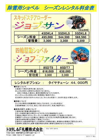 2022/10/17~ フォークリフト・タイヤショベルのレンタル料金を改定をいたします。